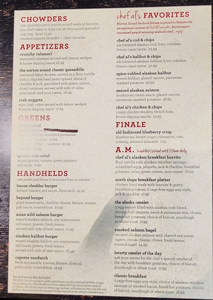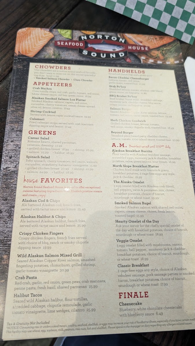 If you're in the mood for fresh, mouthwatering seafood, look no further than the Norton Sound Seafood House Menu. Located at 5000 W International Airport Rd in Anchorage, AK, this cozy spot brings the tastes of the Alaskan coast right to your plate. The menu is a celebration of local seafood, with everything from perfectly grilled salmon to savory crab cakes. Each dish is crafted with the finest ingredients, ensuring that every bite bursts with flavor. Whether you're craving a light appetizer or a hearty entrée, there's something for everyone. The atmosphere is warm and welcoming, making it the perfect place to relax and enjoy a meal with family and friends. If you’re nearby, don’t miss the chance to experience these coastal delights that’ll leave you coming back for more.
